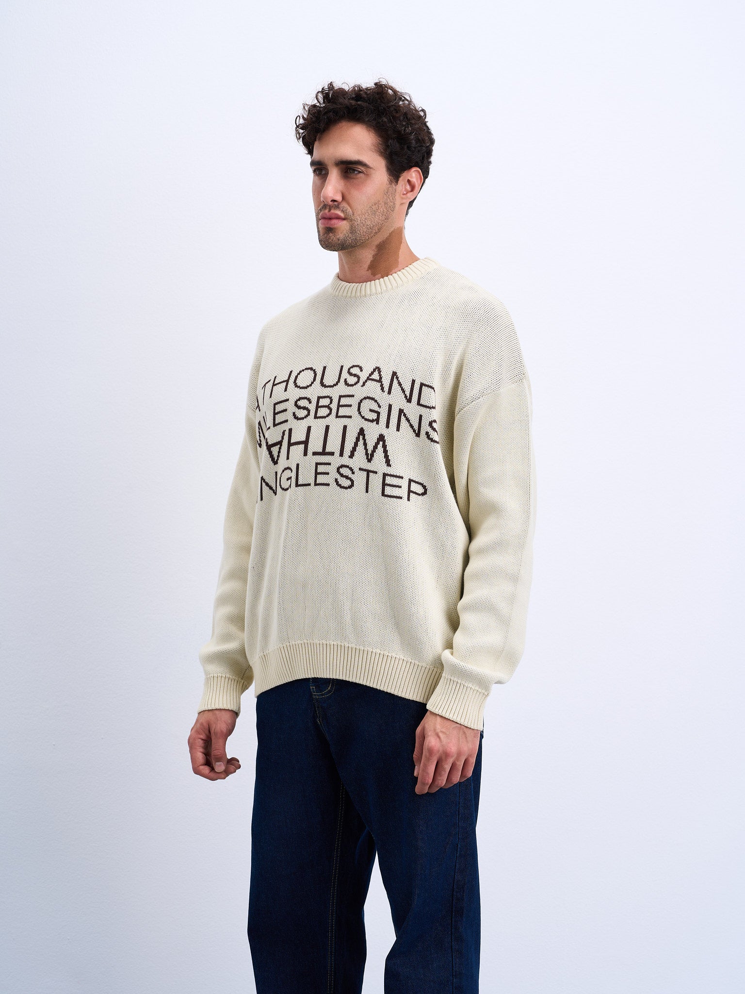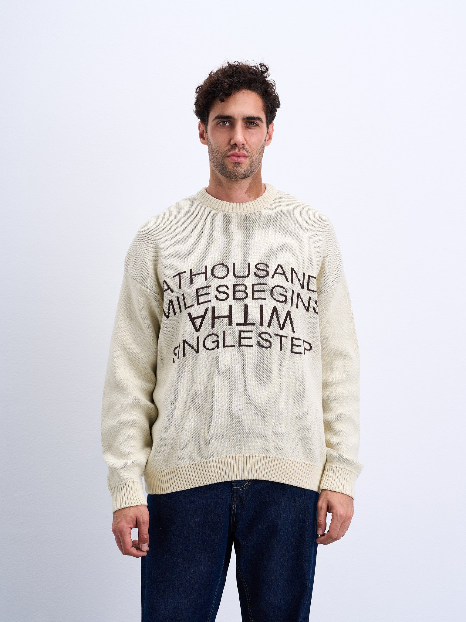 A Thousand Mile Knitted Sweater Knitted Crewneck Unisex 100% Cotton Original fit